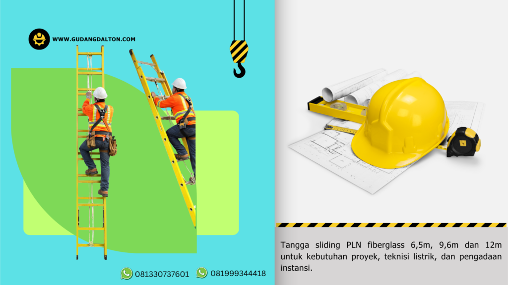 Tangga PLN Fiberglass adalah tangga sliding khusus untuk pekerjaan kelistrikan karena terbuat dari bahan fiberglass yang tidak menghantarkan listrik. Produk ini banyak digunakan oleh teknisi listrik, kontraktor proyek, hingga instansi pemerintah.